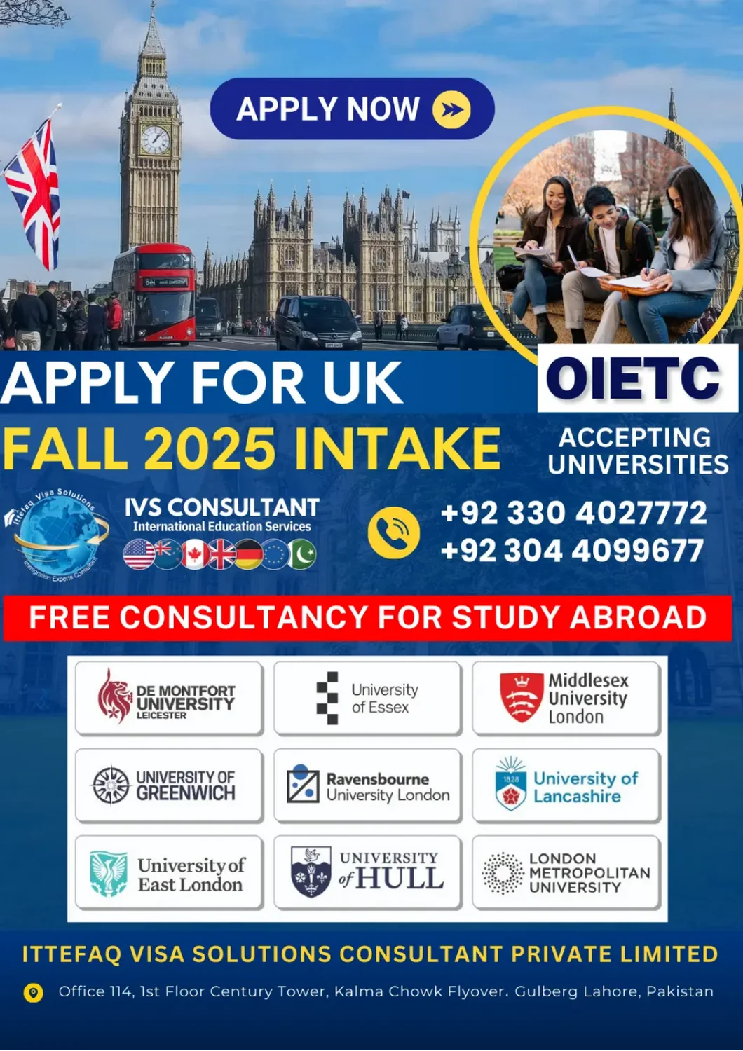 IVS Consultant provide free consultancy Study Abroad Pakistan. Best Education Immigration Visa Service. Students find top universities in UK, USA, and Europe. We specialize in international educational visa consultancy services, dedicated to helping students realize their dreams of Studying Abroad. With a commitment to ease and excellence, we guide students through every step of the migration process, ensuring they achieve their academic and career aspirations in their chosen countries. Join us and take the first step toward your global education journey.