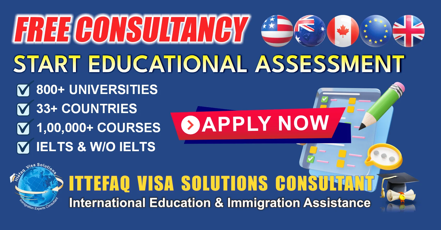 Ittefaq Visa Solution and Consultant specialize in international educational services for students aspiring to study abroad. We are dedicated to turning students’ dreams into reality by providing expert guidance through every stage of the migration process. With a focus on ease and excellence, we help students reach their academic and career goals in their chosen destinations. Start your journey toward global education with us today.